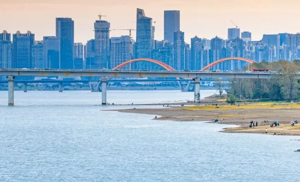 银星湾公园身型狭长,沿江岸铺陈,水杉林秋色正美。林中设有专门露营的台架,掀开帐篷,外头是秋水涟漪,后头是馥郁森林。站在顺着芦苇荡延伸出去的柔软江岸,左侧是兴联路大桥与月亮岛,右侧是绵延的湘江和三汊矶大桥,一江两岸的美景,浓缩于视野里。