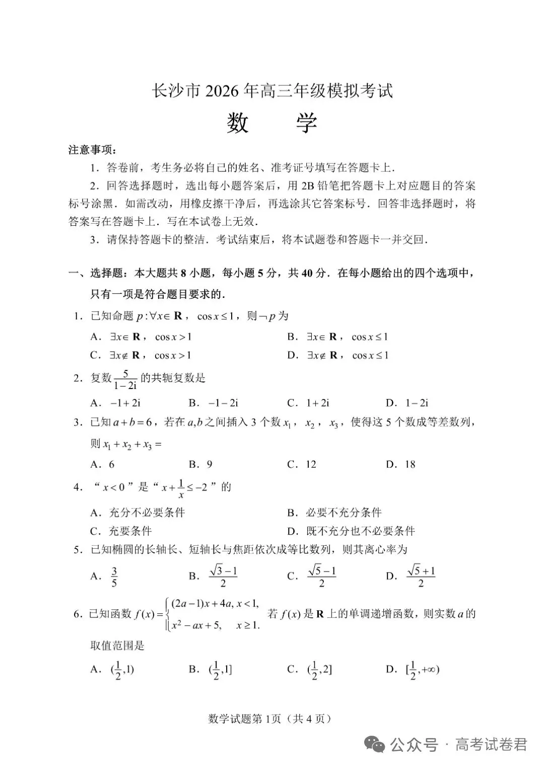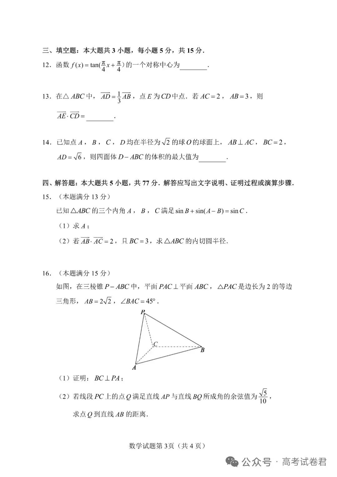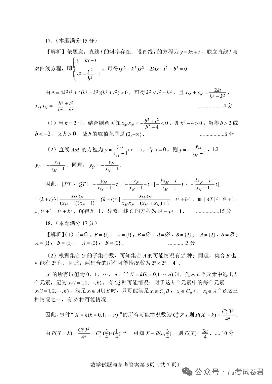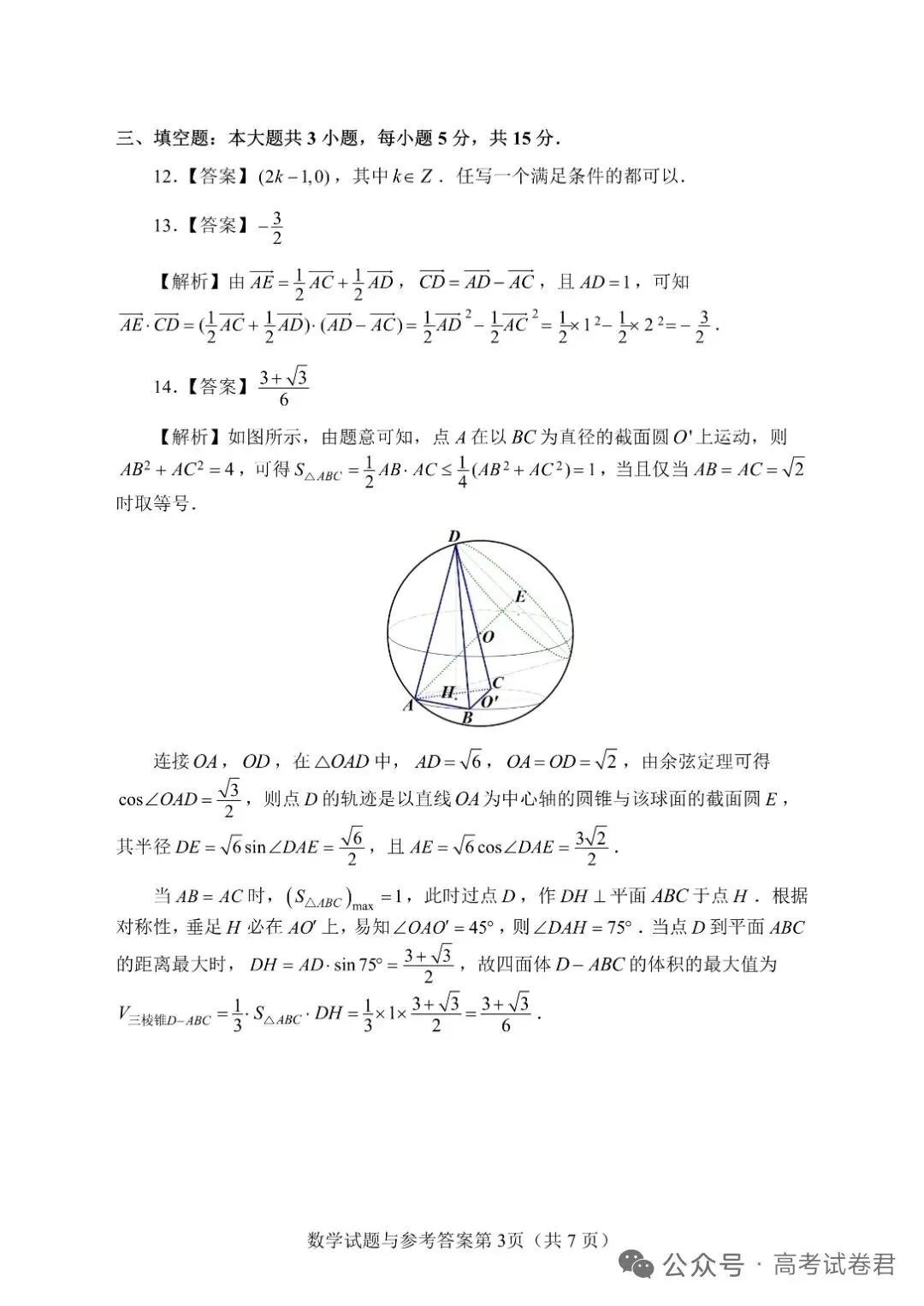 下附原卷及解析