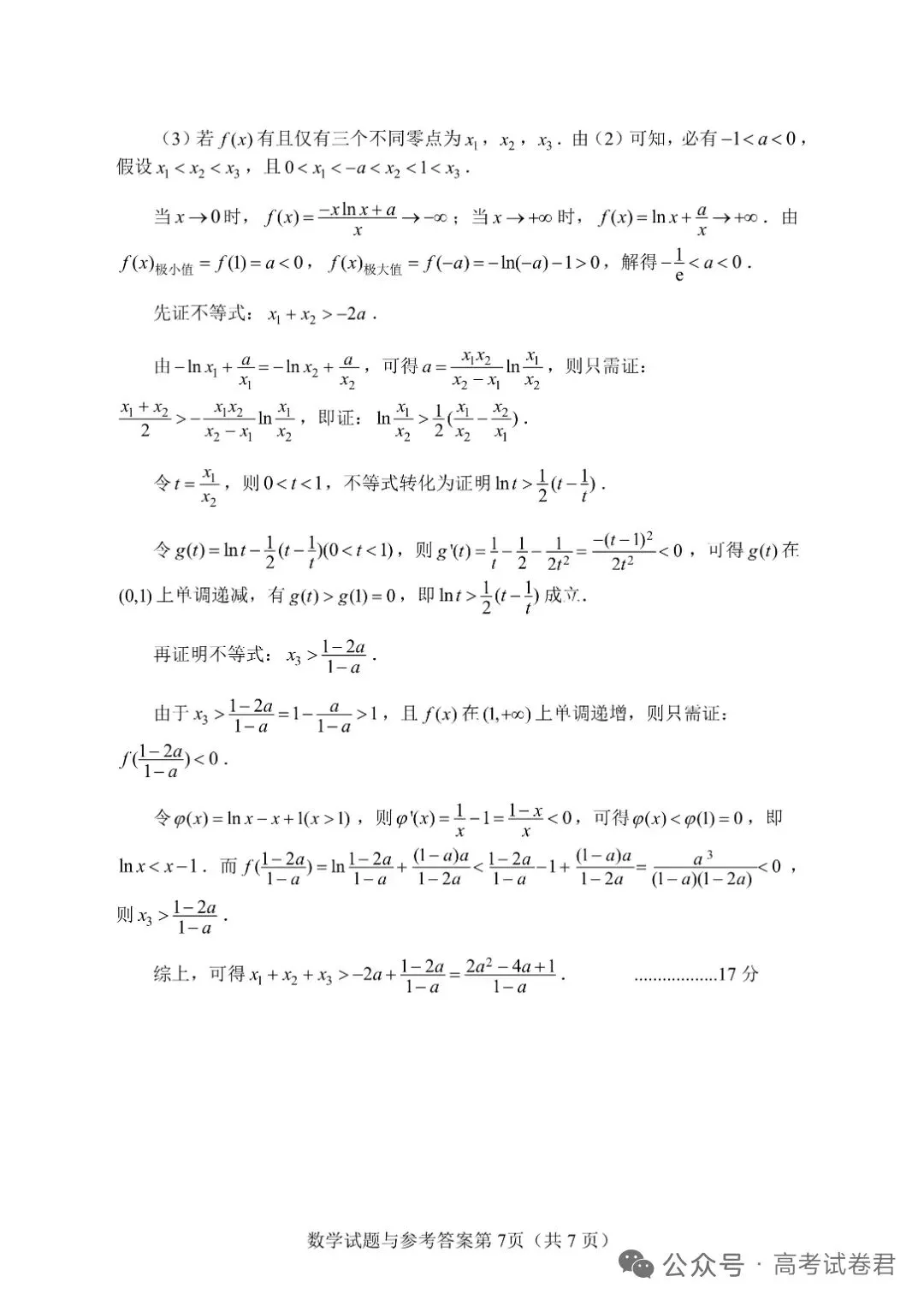 最常见的三变量 一般也就是俩偏移一个放缩 常见套路了 不过我感觉我这个比答案的复杂了一点 因为求导的时候感觉麻烦了点