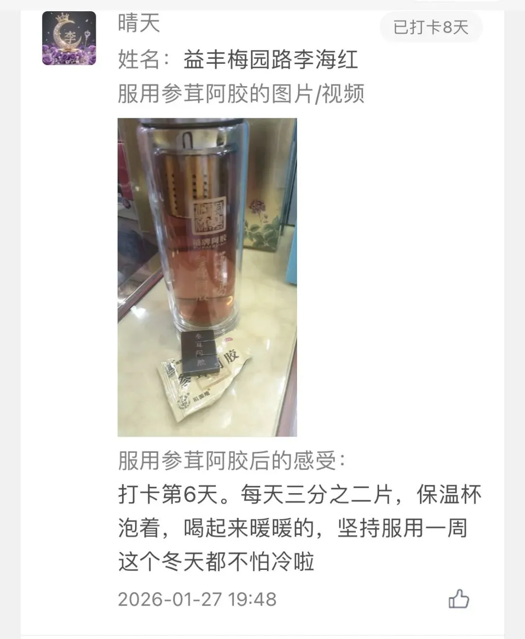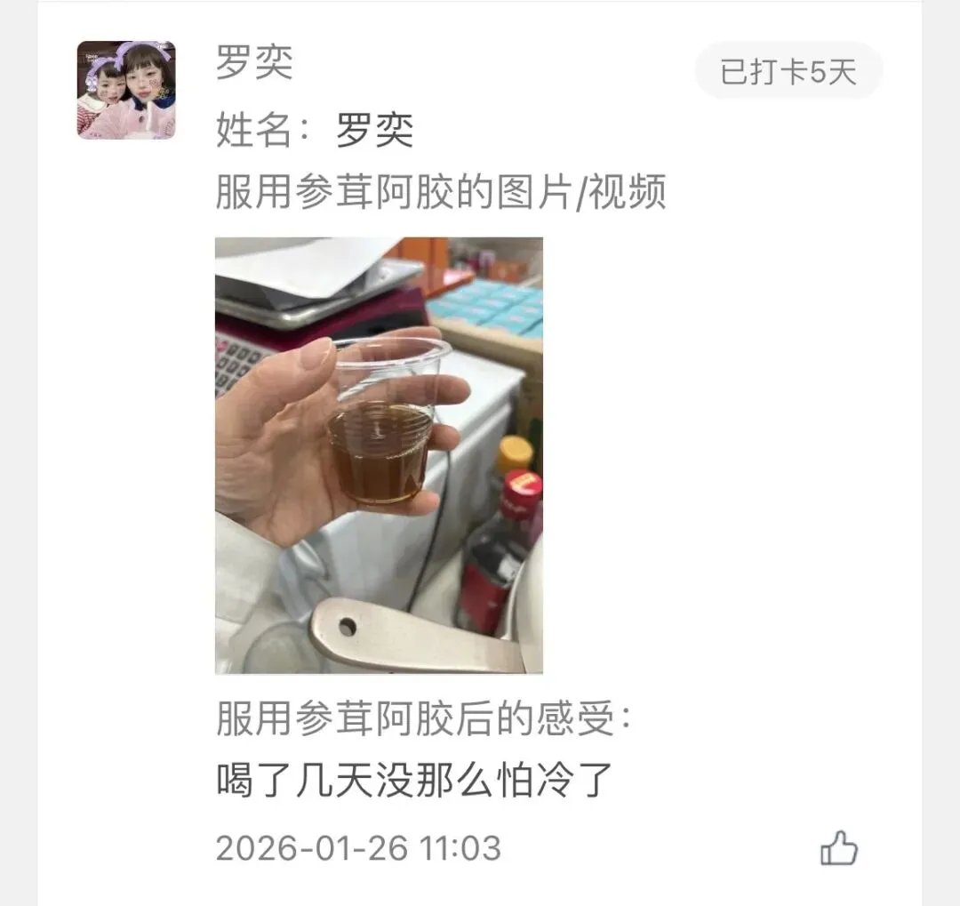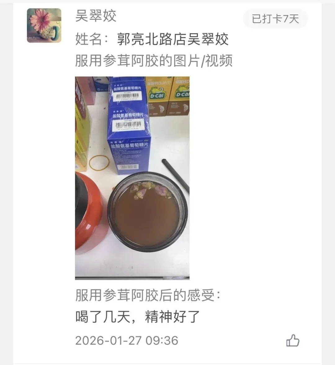 线上线下联动促销配合深度体验,极大激发了消费意愿。尤为珍贵的是来自参茸阿胶体验官的真实反馈,诸如“喝了第五天,明显感觉不怕冷了”等真实聊天记录,成为了产品口碑最有力的印证。各门店反馈阿胶及相关产品咨询量激增,体验式消费模式明显拉高了成交率与客单价。