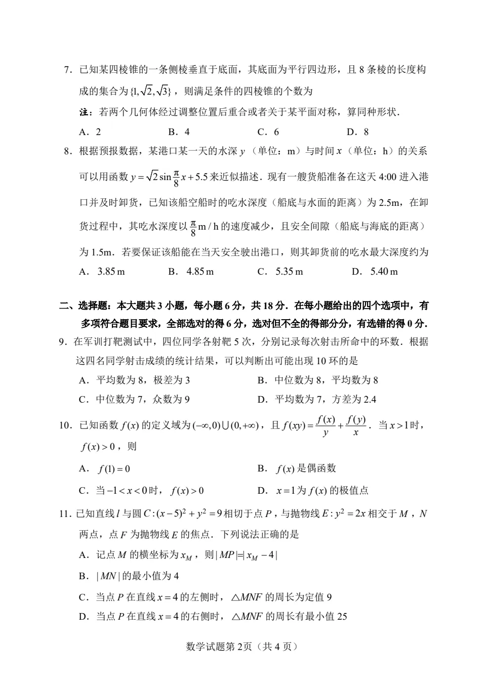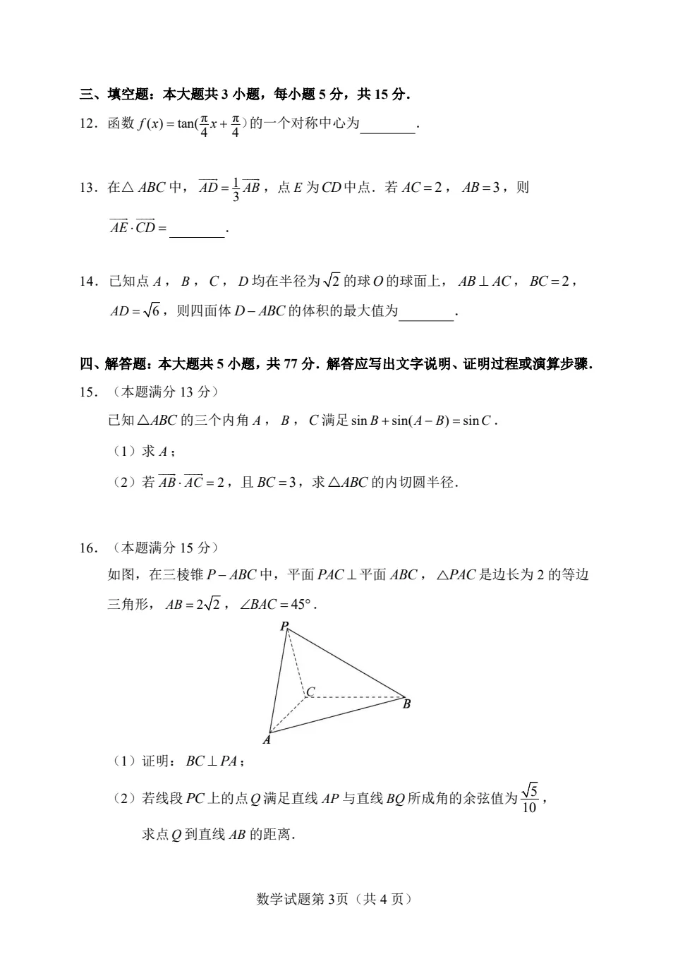 2026 届湖南省长沙市高三年级第一次模拟检测数学试卷及答案