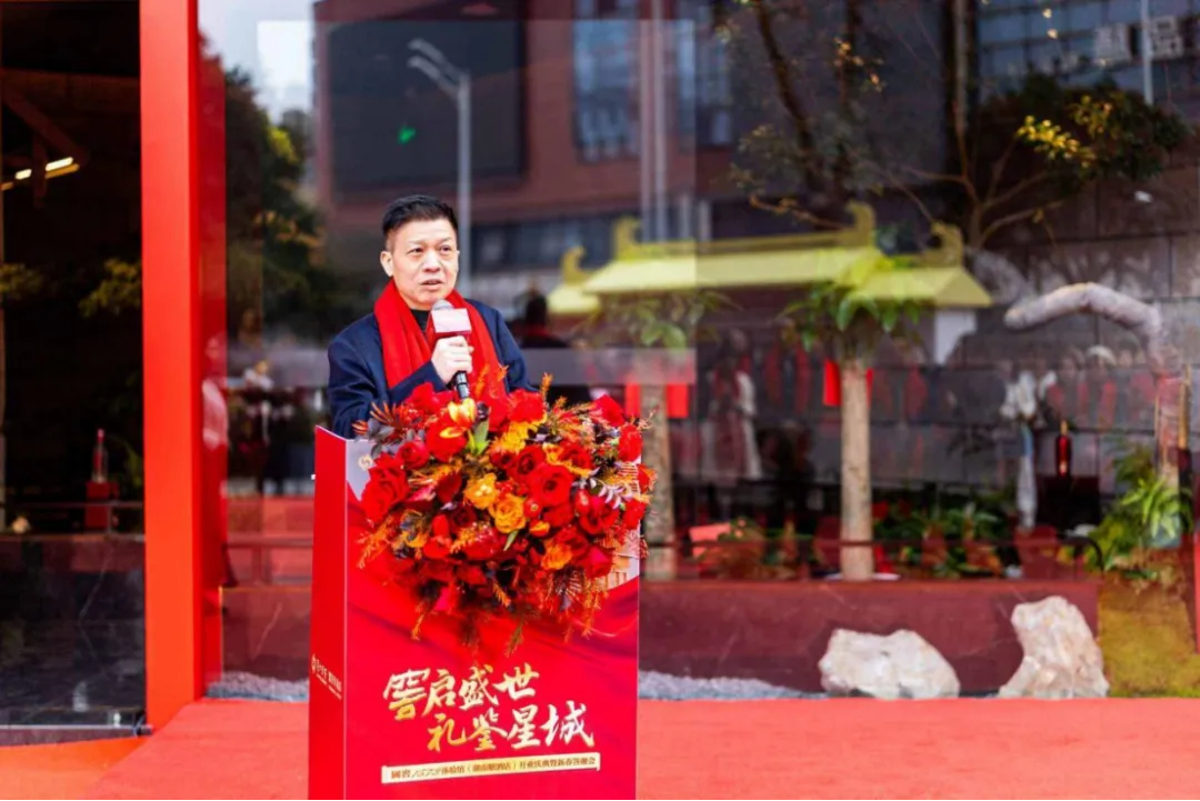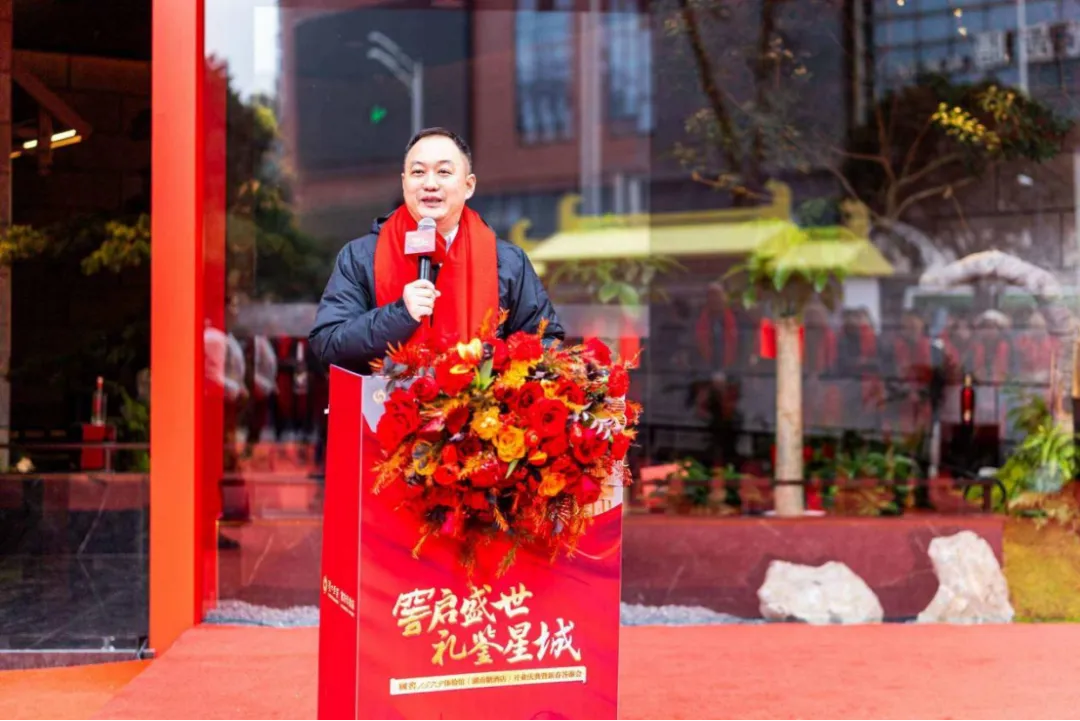 开业典礼上,湖南省糖酒副食品有限公司党委书记、董事长盛朝阳发表致辞,对莅临嘉宾表示热烈欢迎与诚挚谢意,深度回顾了泸州老窖蝉联五届“中国名酒”的卓越历程,盛赞其坚守传统、深耕实业的匠心担当,以及在民族文化与传统产业传承中的标杆作用。