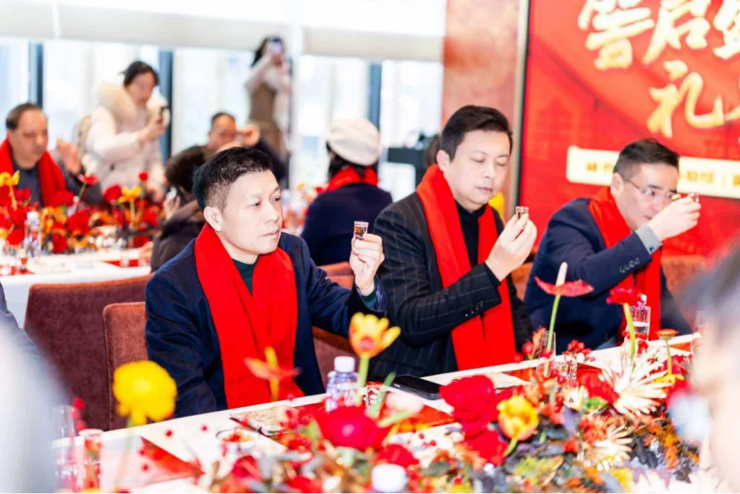 礼炮齐鸣,共启新程。湖南体育产业集团总经理龚旭红、副总经理郑晓明,湖南省糖酒副食品有限公司董事长盛朝阳、总经理徐亮,泸州老窖优选供应链管理有限公司执行董事、总经理黄逊等领导嘉宾共同为体验馆揭牌,见证这一重要时刻。揭牌仪式后,嘉宾们沉浸式参观体验馆,亲手参与勾调体验、品鉴特色鸡尾酒,在互动中感受古法技艺与现代潮流的碰撞,解锁白酒文化的多元表达。午宴环节,双方负责人向全体来宾致以新春祝福,共祝体验馆开业大吉、蒸蒸日上,携手在长沙这片热土上书写品牌与区域共生共荣的新篇章。