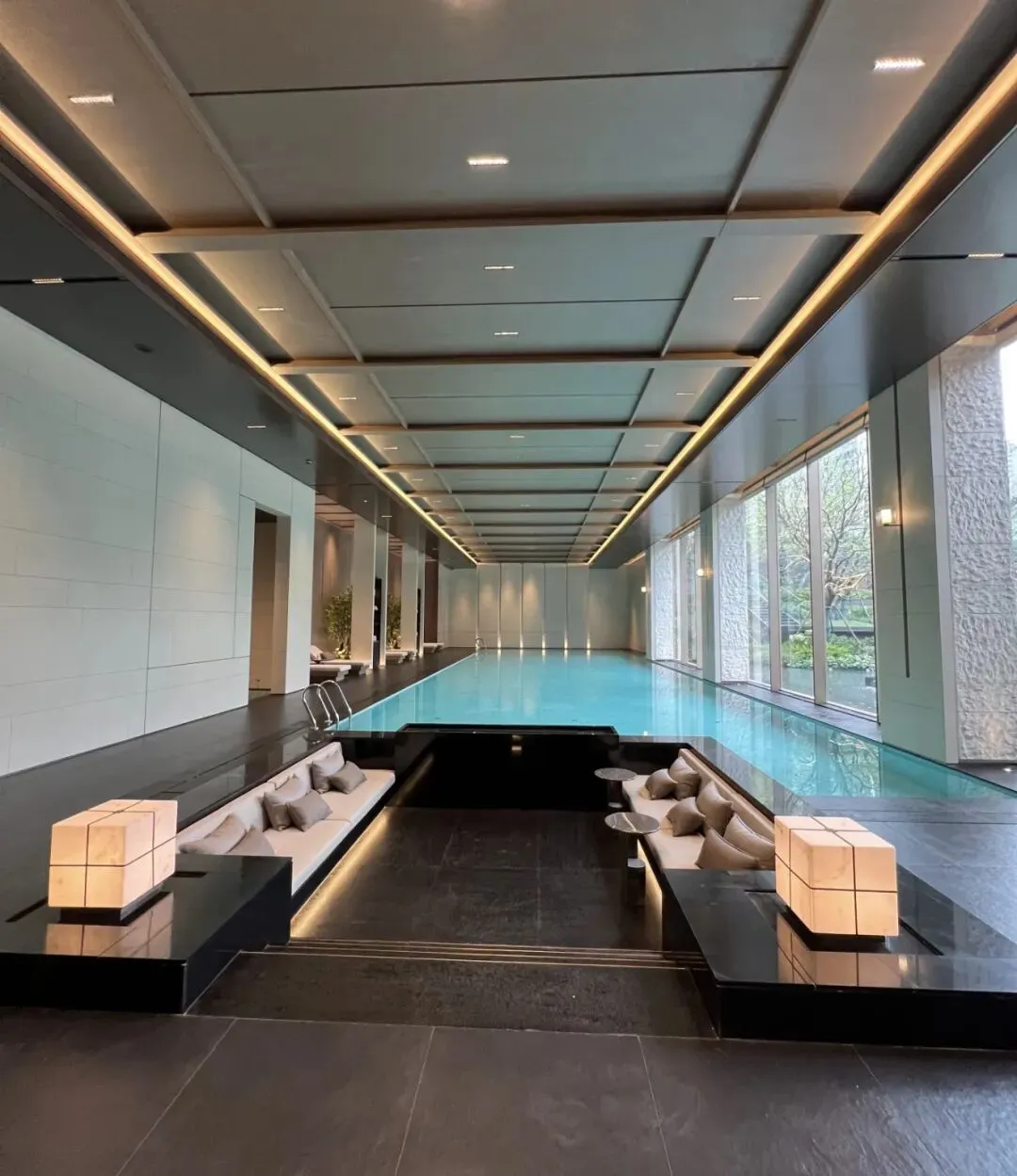 2. 光影的艺术化运用:无论是泳池区的线性灯带,还是户外休憩区的壁灯,都通过明暗层次的变化,让空间在不同时段呈现出丰富的表情。