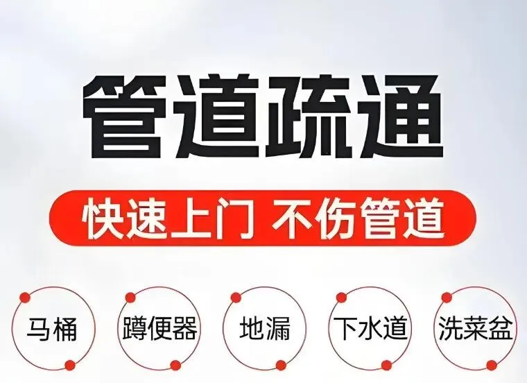 管道疏通:使用家用/大型疏通机,专业疏通各类疑难下水道、卫生间管道、地漏、浴缸、菜池、阴沟、马桶、蹲坑等。