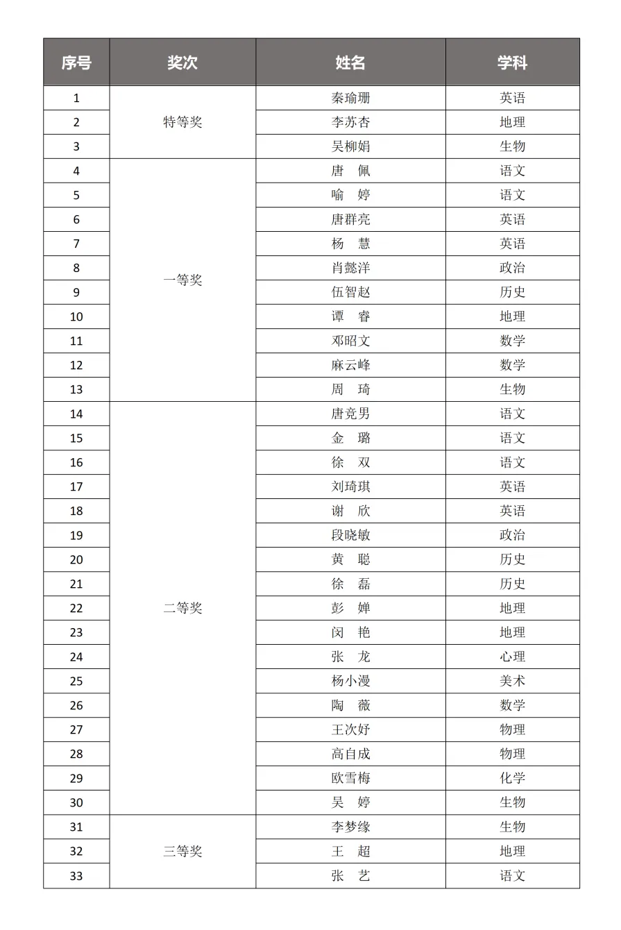 大会首先对2025秋季学期青年教师教学比武活动进行隆重表彰。本次比武共有33名教师踊跃参与,参赛学科覆盖语文、数学、英语等所有文化科目,同时包含美术、心理健康等特色学科,实现了学科全覆盖、青年教师广参与的活动目标。