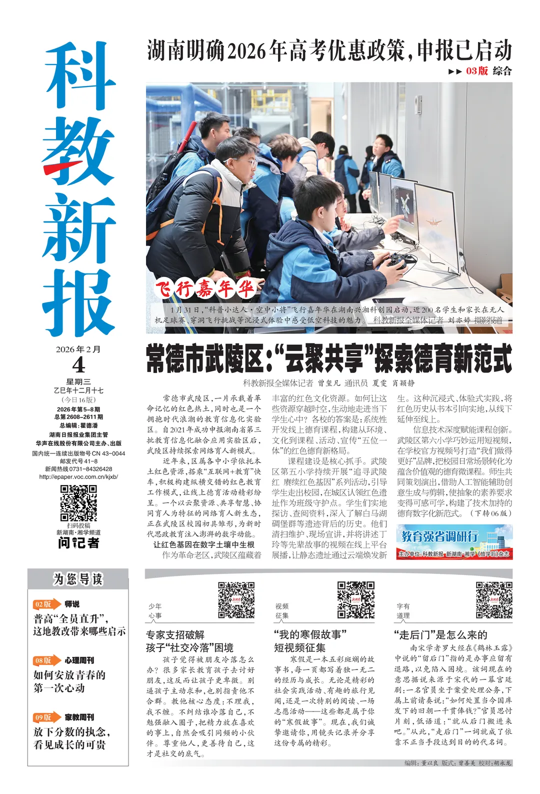 从开发红色思政课程、借力平台拓展时政教育到探索智慧评价的实践路径,武陵区教育局相关负责人总结:“我们的探索,始于对革命老区红色基因传承的责任,兴于对信息技术融合教育大势的把握。无论是让孩子们在云端触摸历史,与千里之外的伙伴同上一堂课,还是用数字画像记录他们的点滴进步,核心都是遵循育人规律,让德育工作更贴近时代、更贴近学生。”