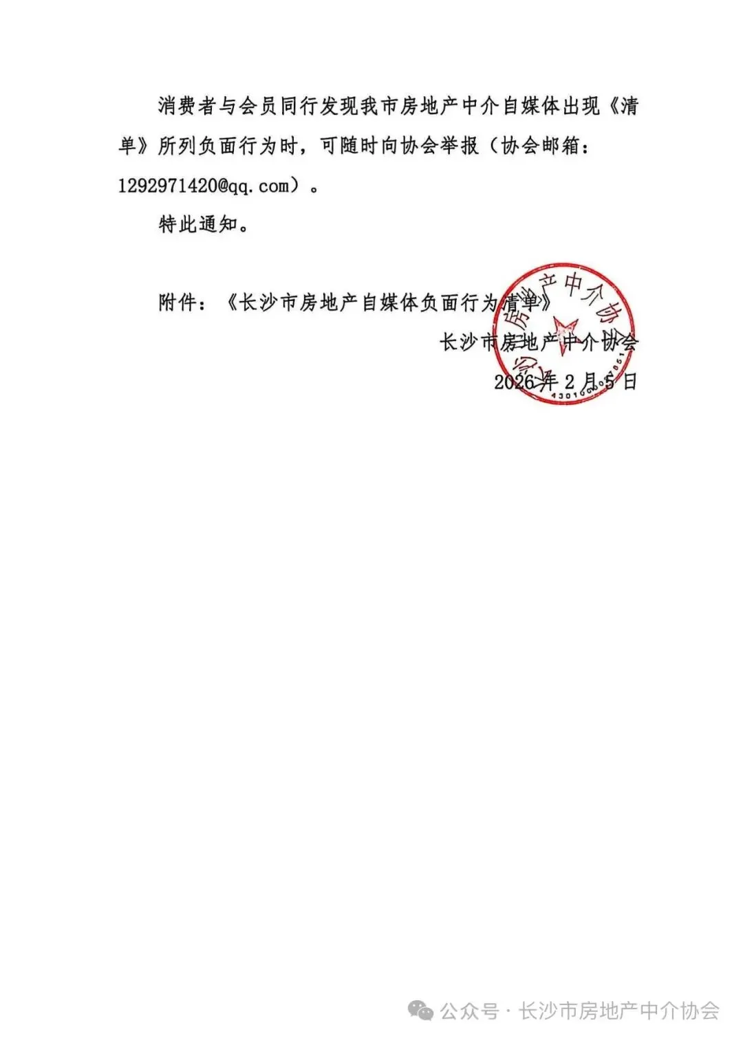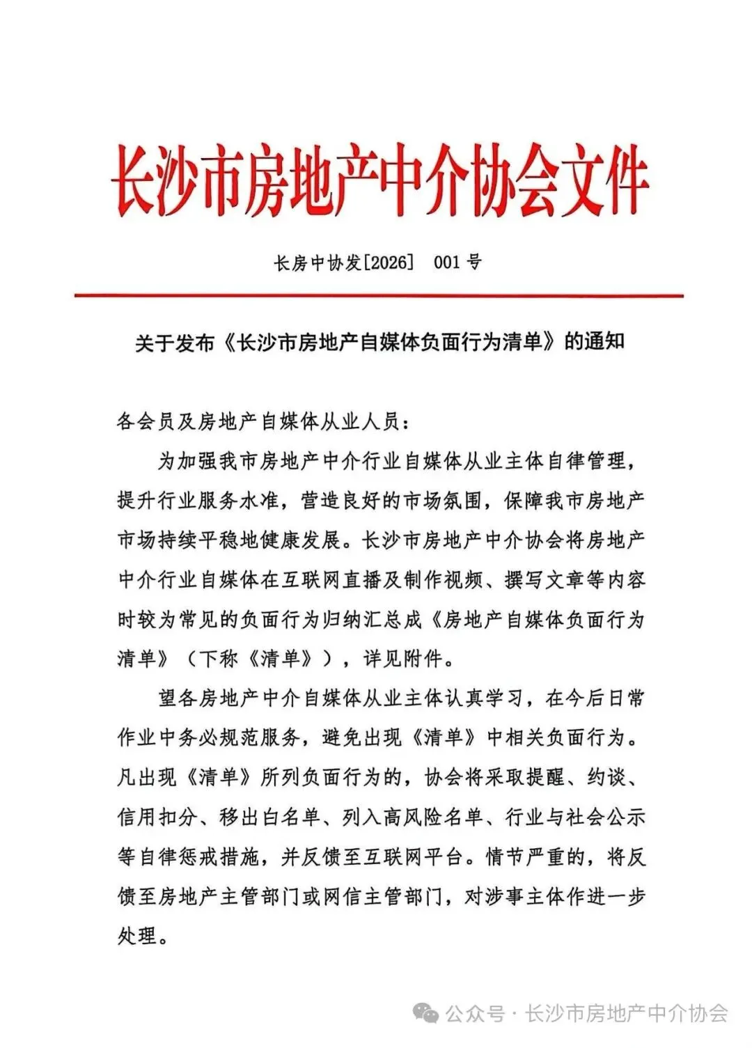 今日,长沙市房地产中介协会正式发布《长沙市房地产自媒体负面行为清单》,为行业内容发布与经营行为划出清晰的红线与底线,推动行业走向更规范、更健康的发展轨道。