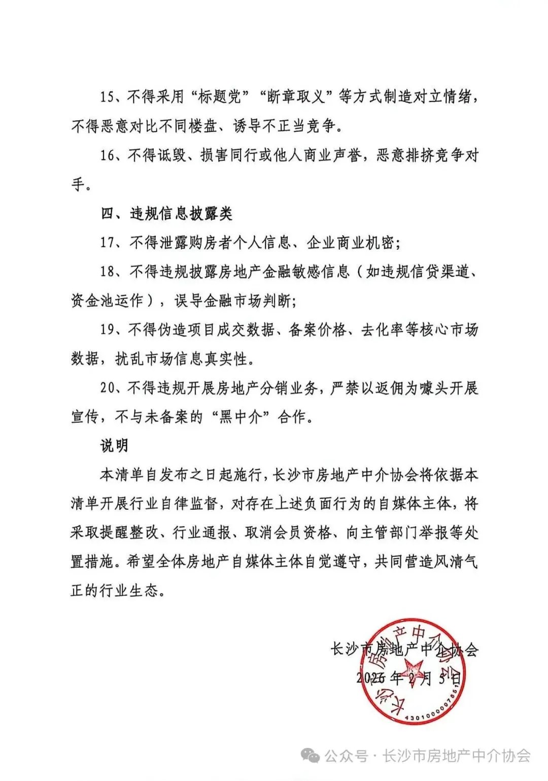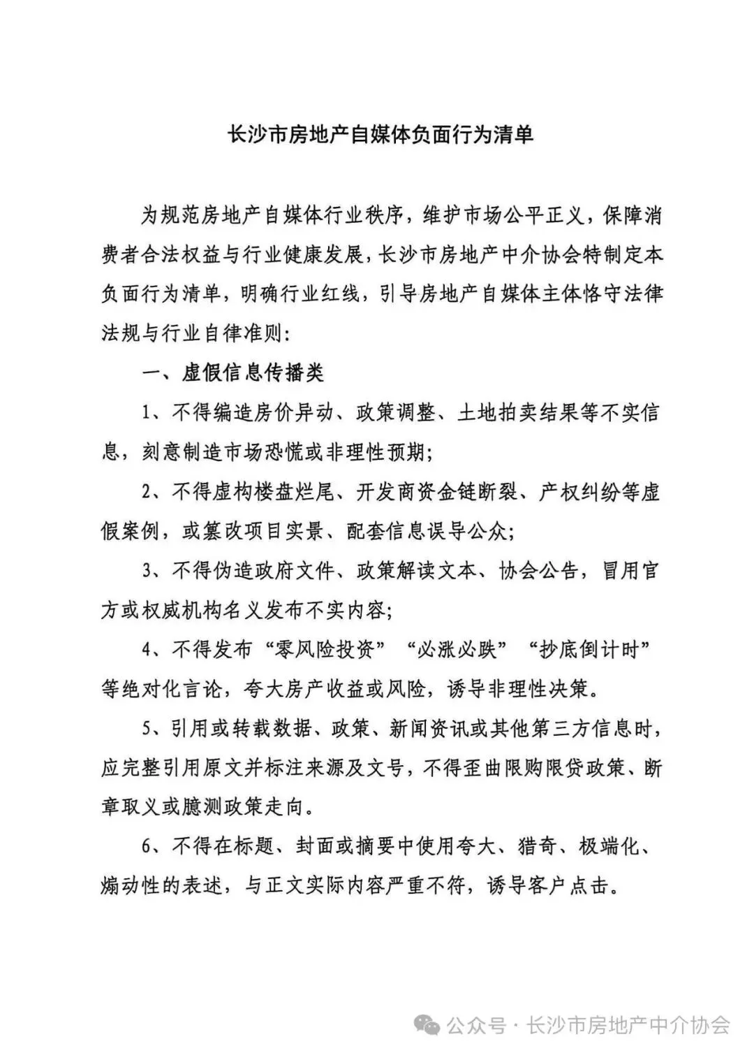 【行业规范再升级|长沙房地产自媒体发布“负面清单”,这20类行为不能再碰!】