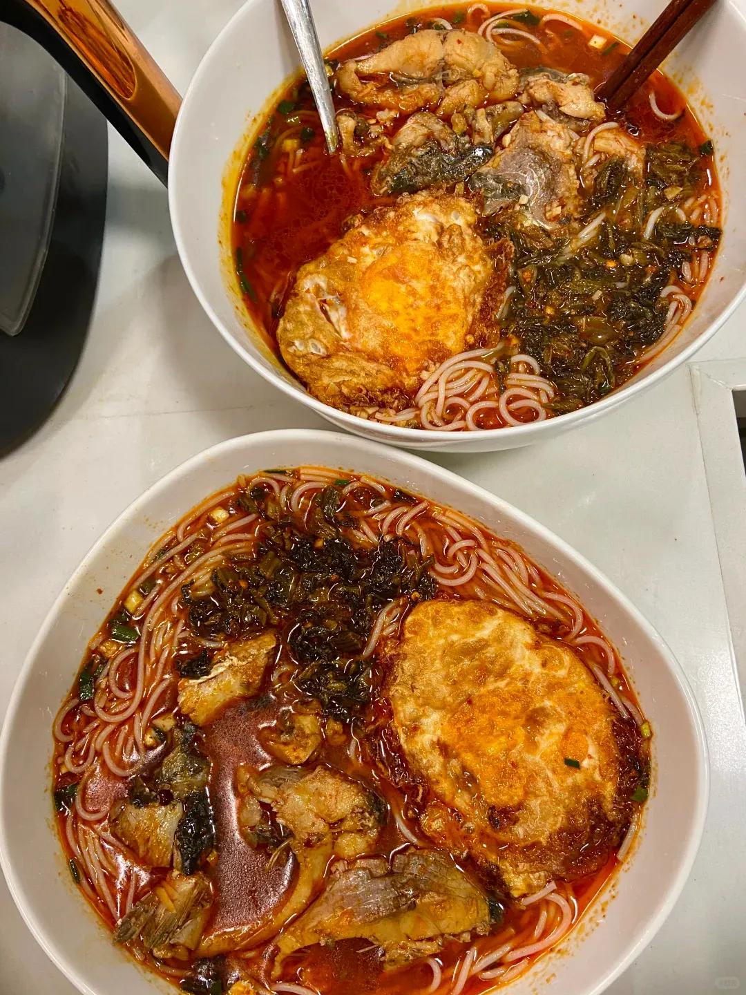 栖凤渡鱼粉做法简述:这粉的魂,全在汤里。现杀的鲢鱼,不过油,直接下锅熬,熬到汤色像牛奶一样白。关键是那一勺红油,得用当地的朝天椒粉在热油里滚过。米粉烫熟,浇上滚烫的鱼汤,撒一把葱花。汤一喝,汗一出,人就醒了。