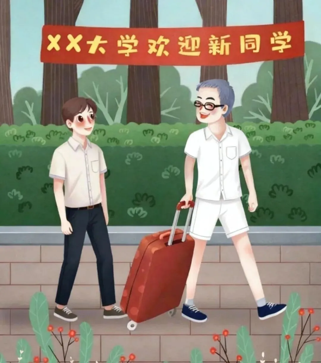 广场上人来人往,到处能看到老同学帮新同学提行李、指导交费、领取生活用品。有同学搬来椅子,让我坐下,并递上茶水。