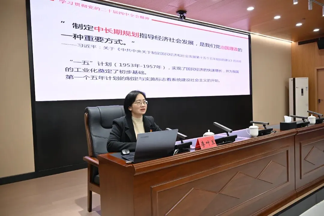 市委党校副教授李叶兰首先作党的二十届四中全会精神专题宣讲。她以深厚的理论功底和鲜活的实践案例,从“十五五”时期的历史方位、总体部署、战略任务、根本保证四个方面进行了全面系统、深入浅出的解读,为参会人员精准把握全会精神提供了有力指引。