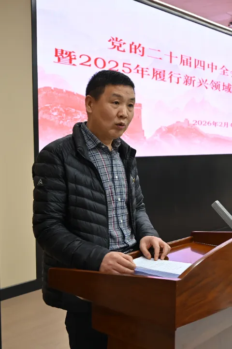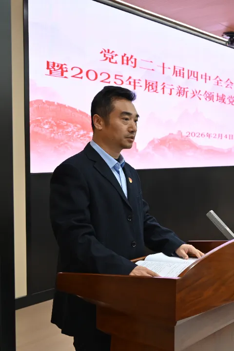 2月4日,长沙市市场监管局召开党的二十届四中全会精神宣讲会暨2025年履行新兴领域党建工作述职会议。局党组副书记、副局长彭进出席会议,各区县(市)市场监管局、行业党委及协会商会党支部负责人参加会议。