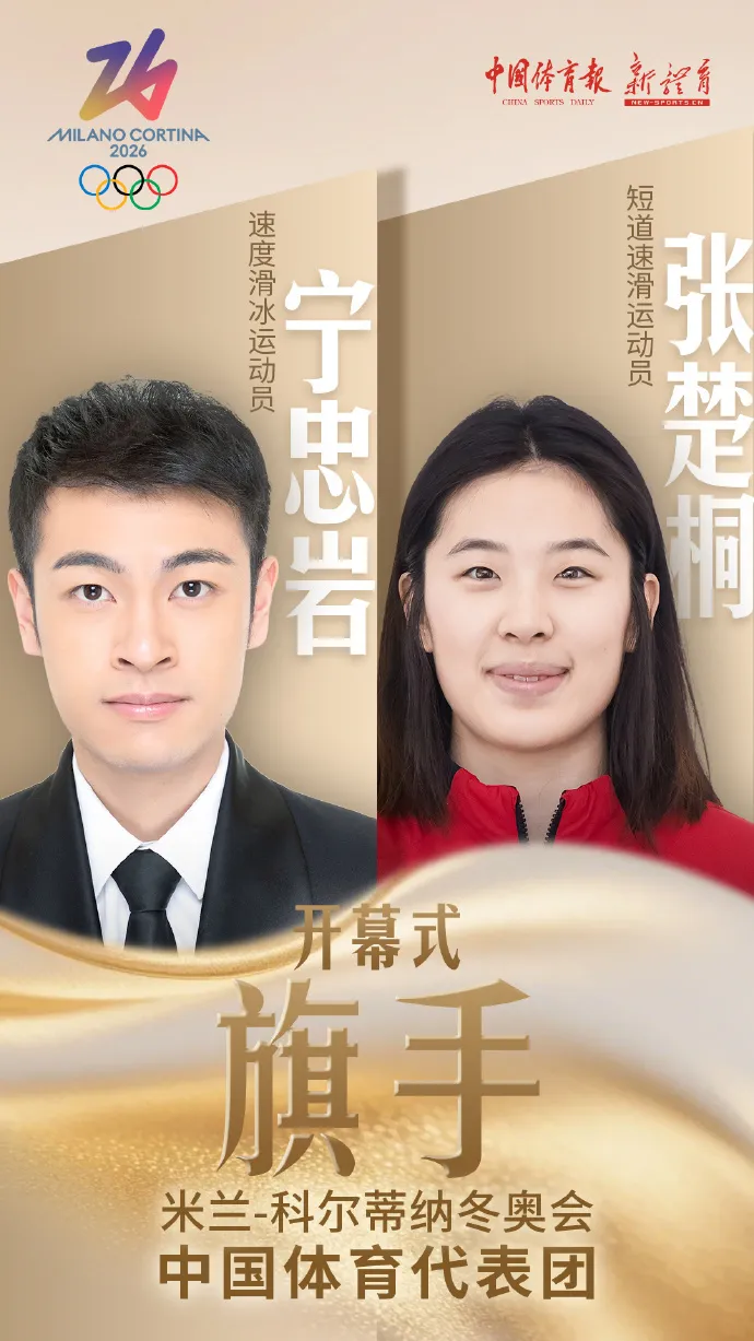 米兰冬奥会中国体育代表团宣布,在6日举行的冬奥会开幕式上,中国代表团旗手将由速度滑冰男子运动员宁忠岩和短道速滑女子运动员张楚桐担任。>>详情:人民日报