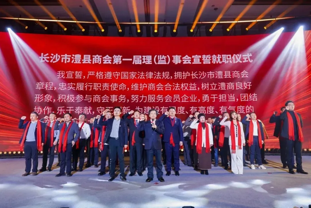 大会在温馨热烈的氛围中拉开帷幕。长沙市澧县商会会长孙昌军热情欢迎各位嘉宾与乡贤,并介绍商会自2025年10月成立以来,已迅速吸纳近两百家会员企业,覆盖文化、科技、商贸、制造等多领域。商会以“服务澧商、反哺家乡”为宗旨,着力打造资源对接、诉求响应、风险防控、品牌赋能等系列服务,致力于构建澧商“温暖家园”和“发展平台”。首届理(监)事会成员庄严宣誓就职,标志着澧商团结协作、共赢发展的新阶段正式启航。