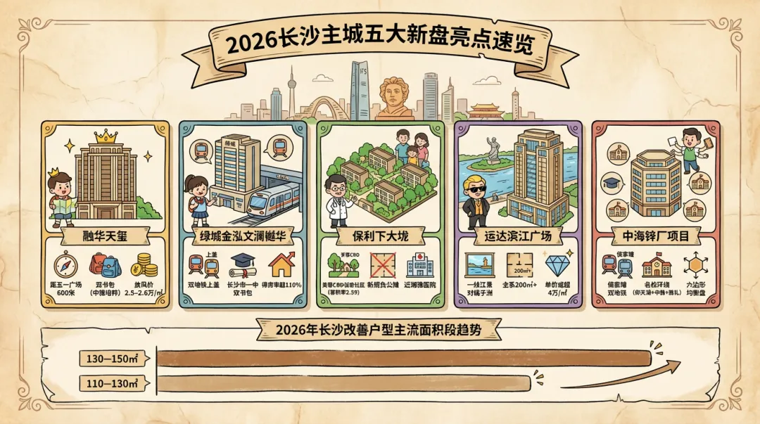 2026年的长沙楼市,改善型需求已成绝对主流。根据克而瑞数据,建面130至150平方米户型最受欢迎,占成交比例的41.6%。