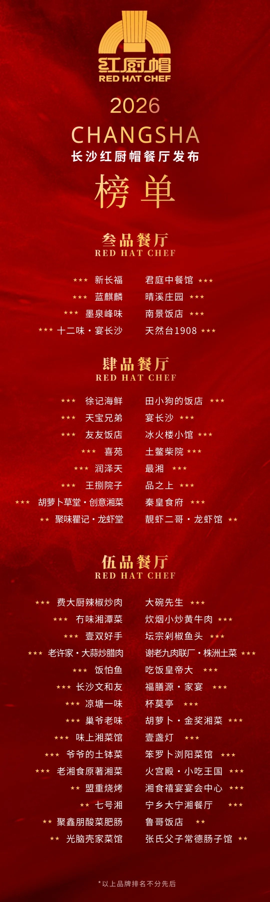 2026年,长沙首批红厨帽餐厅,榜单发布!