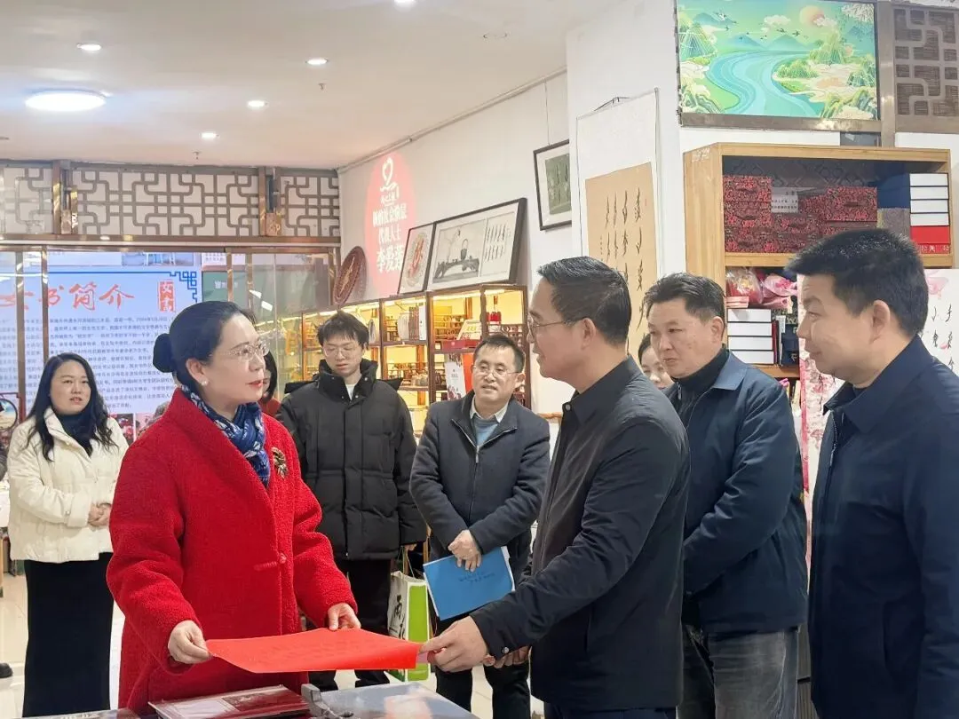2月4日上午,长沙市社科联(院)党组书记、副主席(副院长)张红民带队前往湖南雨花非遗馆、长沙市甲骨文学会,专题调研社科普及基地建设与运行工作,湖南雨花非遗馆馆长邓运姣陪同接待。调研过程中,考察组一行实地参观了皮影、年画、女书、瓷刻等独具特色的非物质文化遗产代表性项目,实地了解了长沙市甲骨文学会关于甲骨文文化的传承与发展成效。