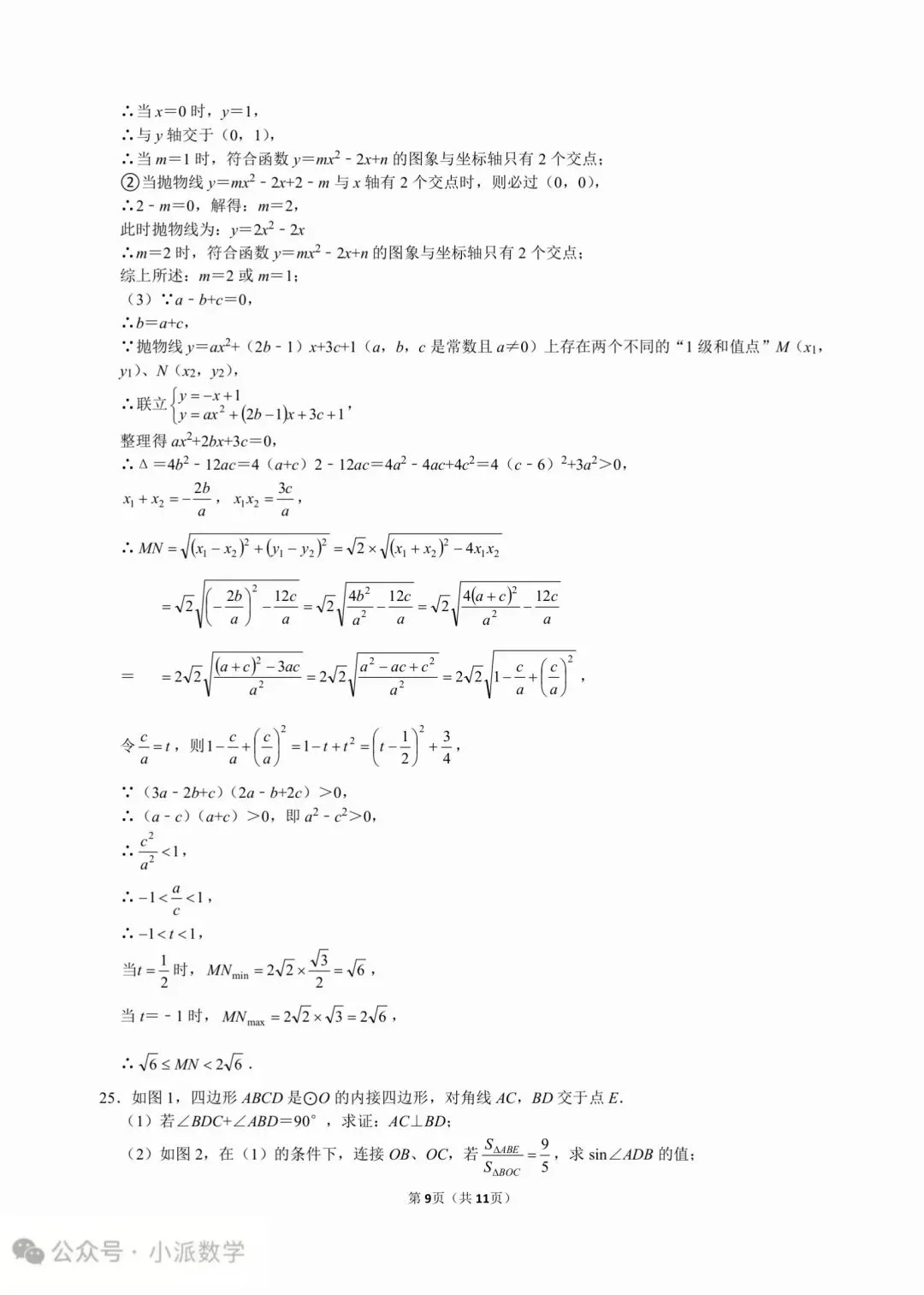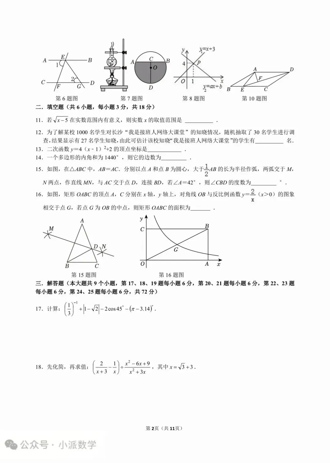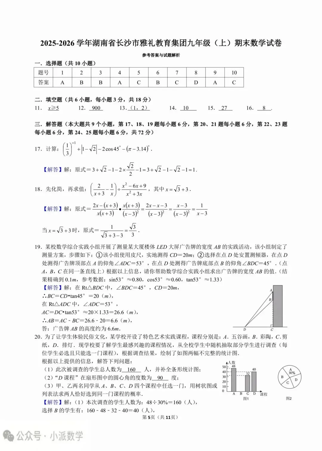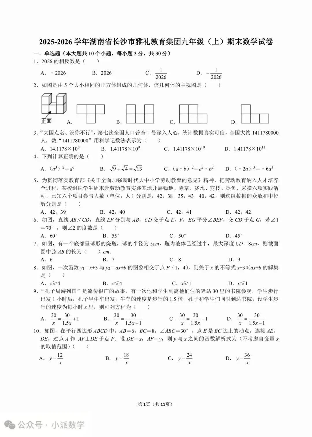 2025—2026学年长沙市雅礼教育集团九年级(上)数学期末试卷(含答案)