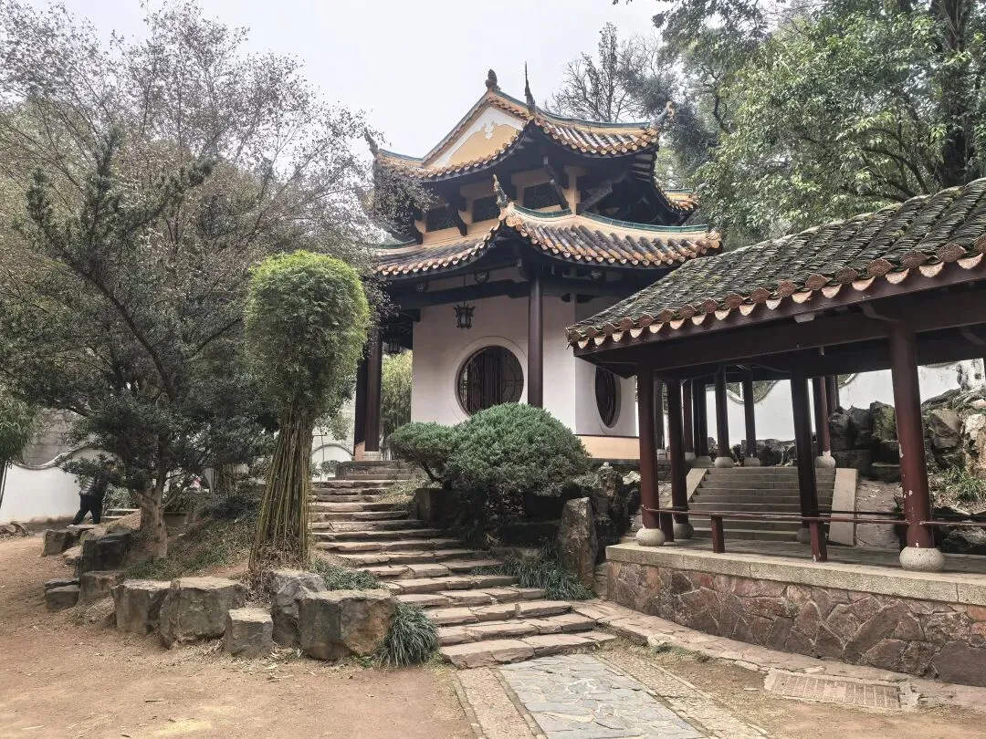 沿着小径缓步前行,古香古色的建筑群落如画卷般徐徐展开,青瓦红墙藏着千年古韵,一砖一瓦镌刻着岁月的诗行。