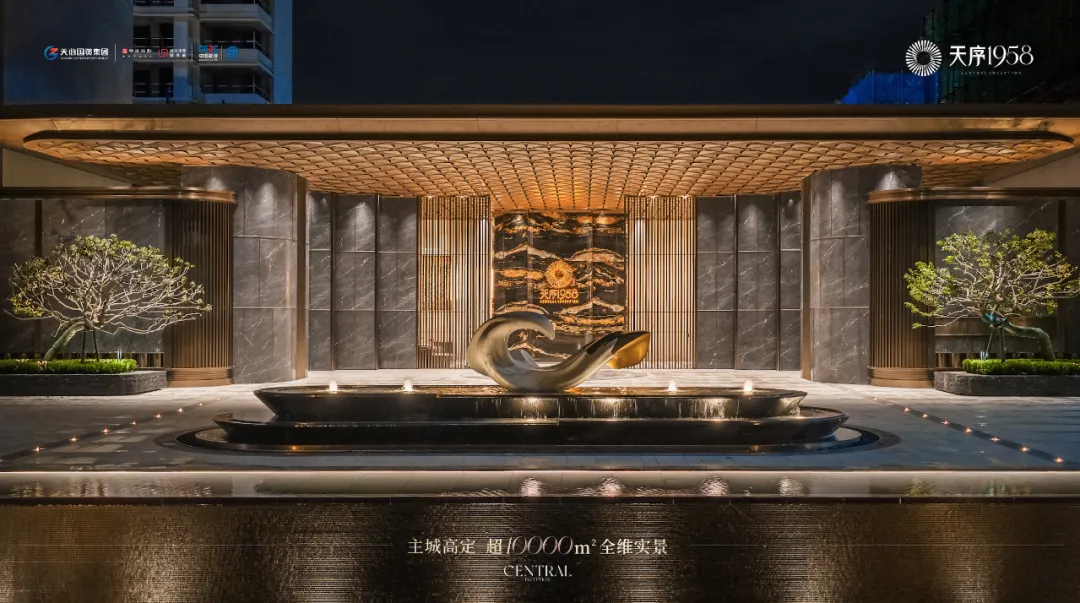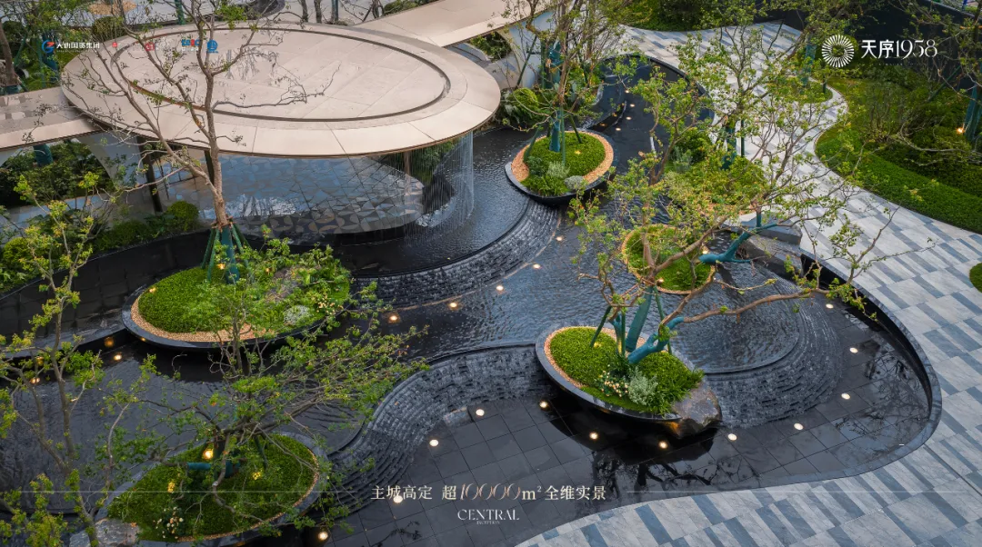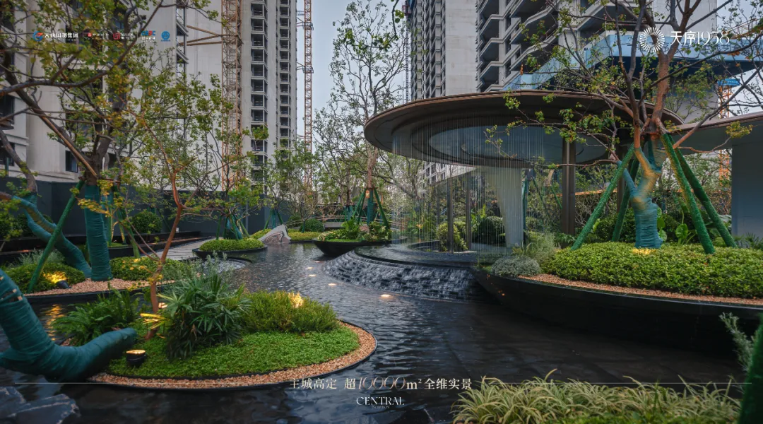 约500㎡叠瀑镜水+云影回廊+城市浮岛;140m超长央景中轴、超4000㎡中庭大境。