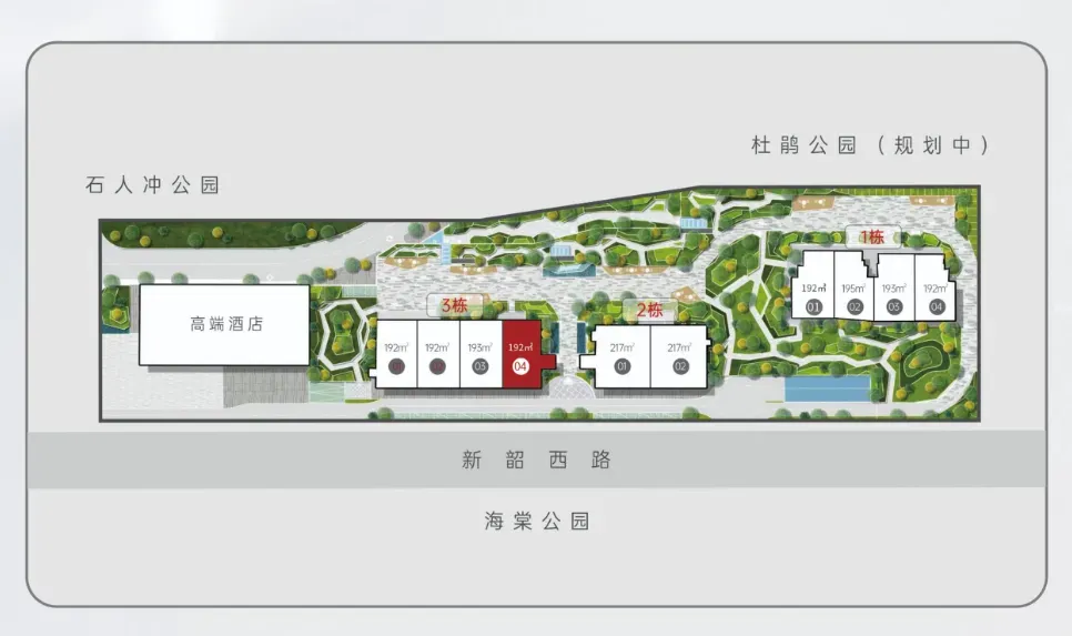 位置牛:南面是海棠公园小湖景;北面是石人冲公园!