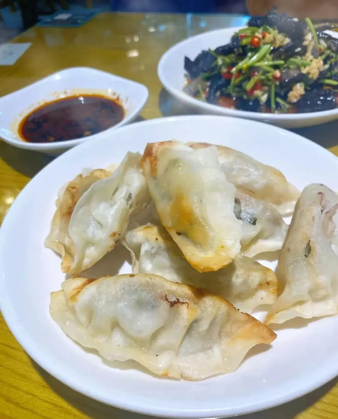 比如锅饺,那外皮清脆带锅巴香,一咬下去“咔嚓”流汁,蘸上店里特调辣椒油,鲜香到让你怀疑人生。还有咸汤圆,个头堪比拳头大,外皮软糯,里面包了一整坨肉馅,轻轻一戳汤水就哧的一声溢出来,老公上次连吃仨直喊爽!
