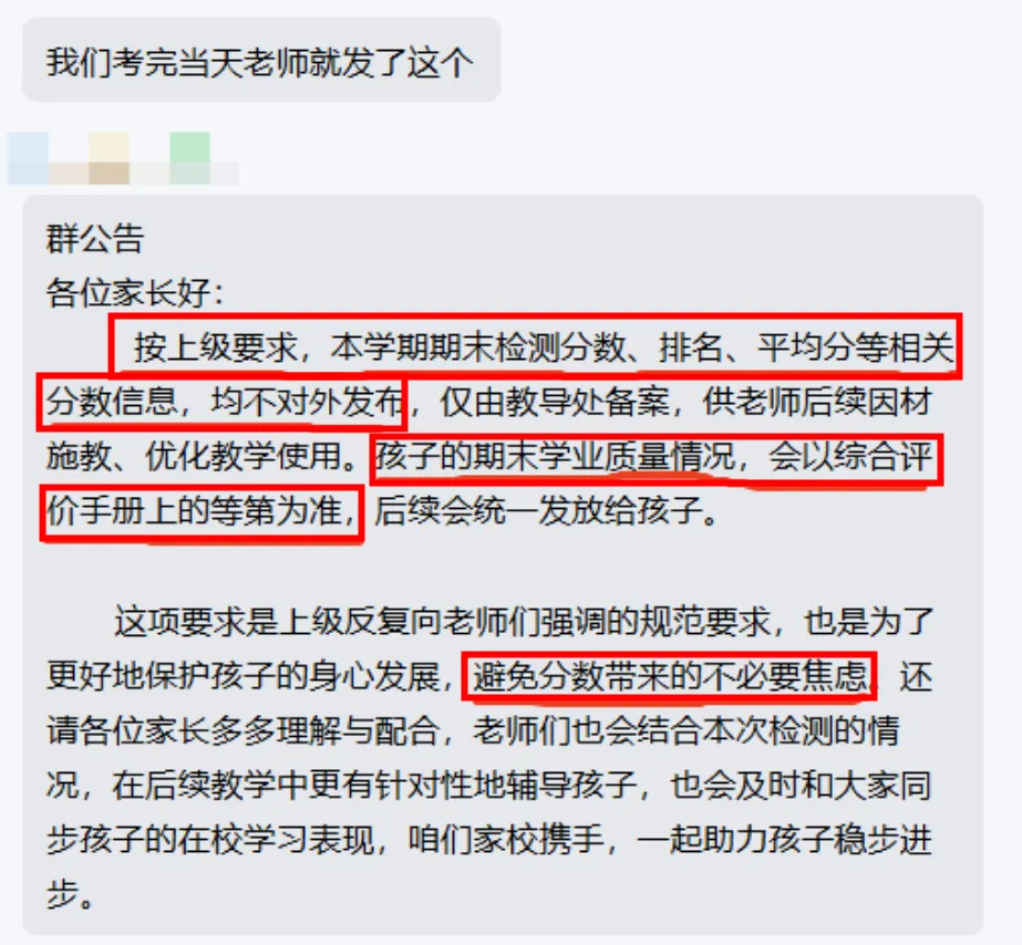 因此在本次考试前后,长沙就有部分学校发布了“本学期期末检测分数、排名、平均分等相关分数信息均不对外发布”的通知。