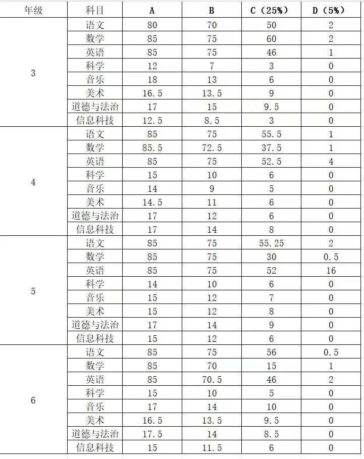 整理了25年望城区小学期末成绩等级的分数范围,大家可以参考一下: