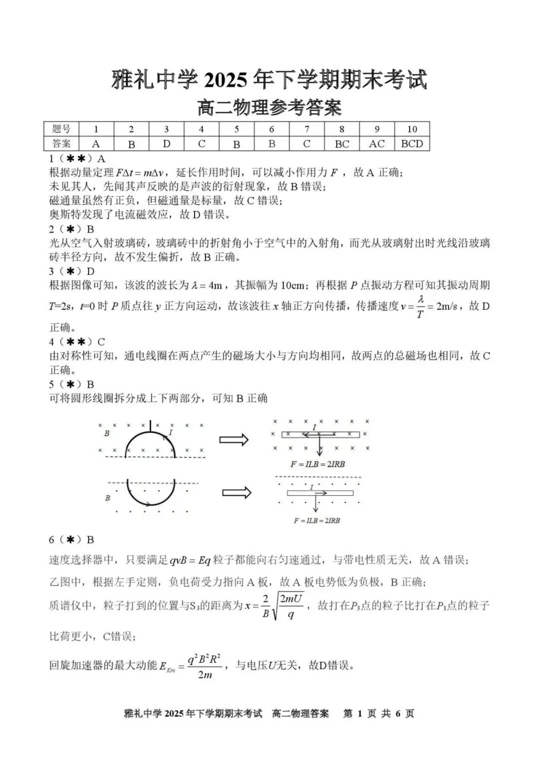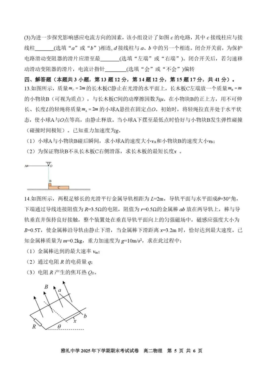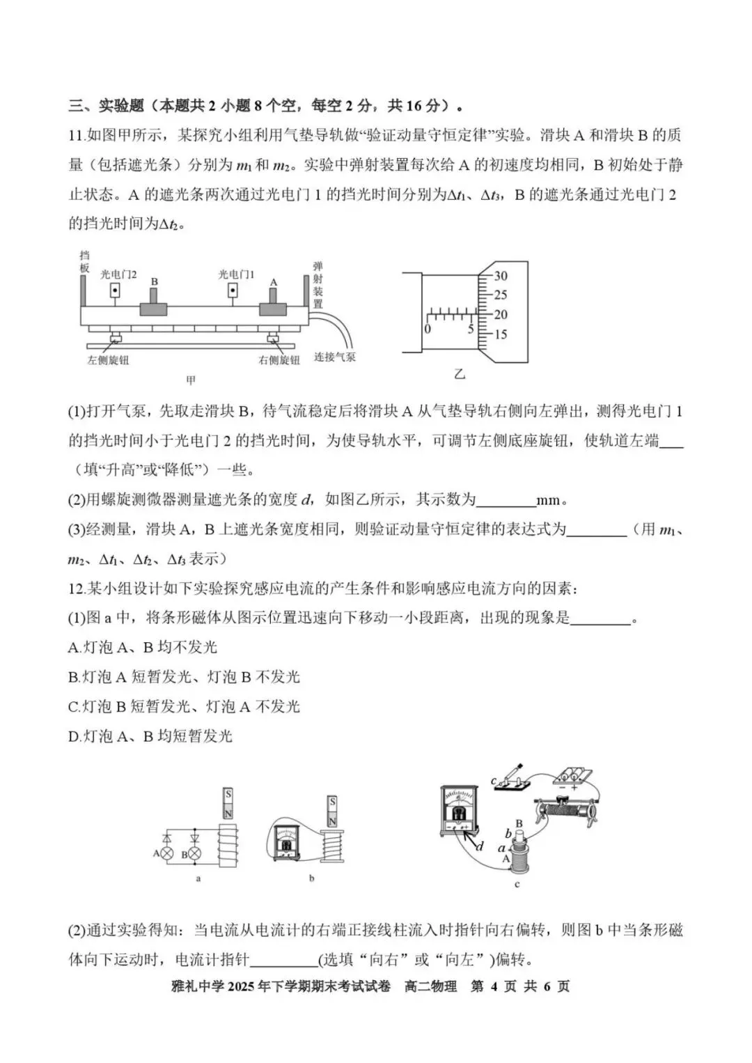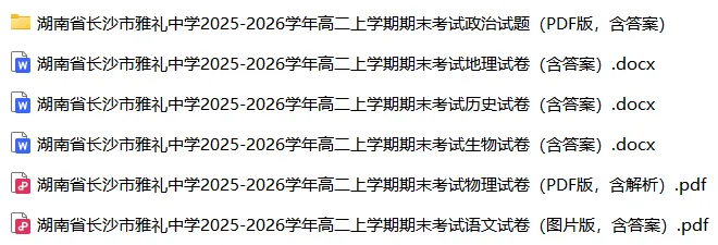 湖南省长沙市雅礼中学2025-2026学年高二上学期期末考试
