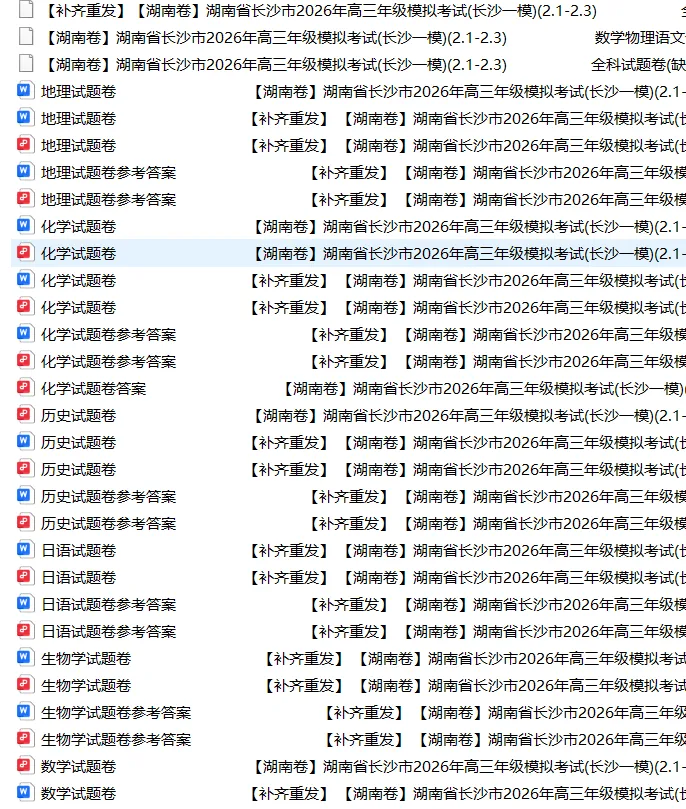 长沙市2026届高三一模试题资料
