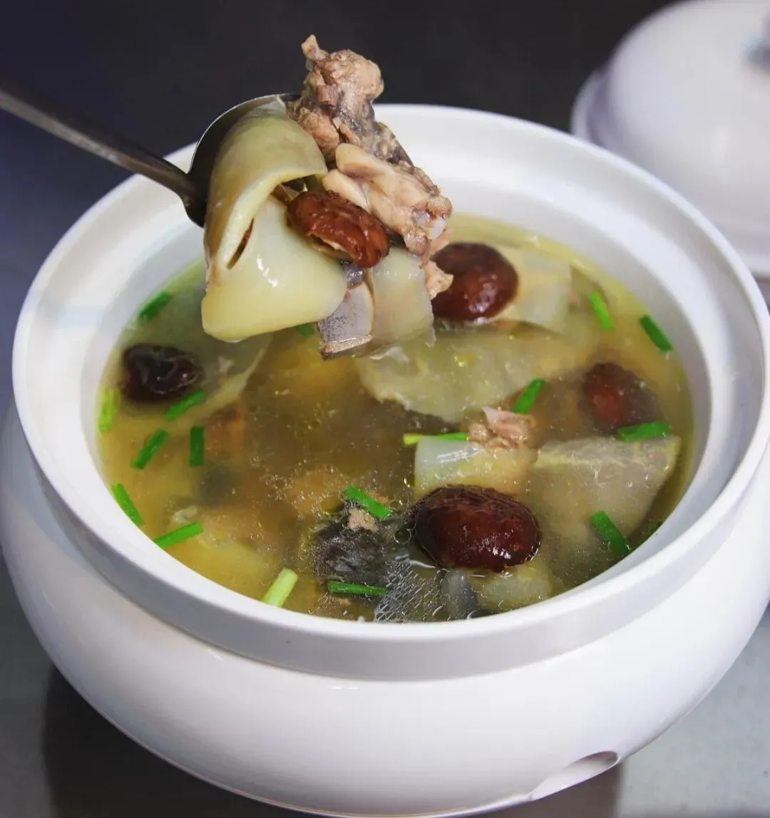调味靠高汤提鲜,鸡、骨、肉熬的浓汤,鲜得纯粹,咸淡适中,突出食材本身的味道。
