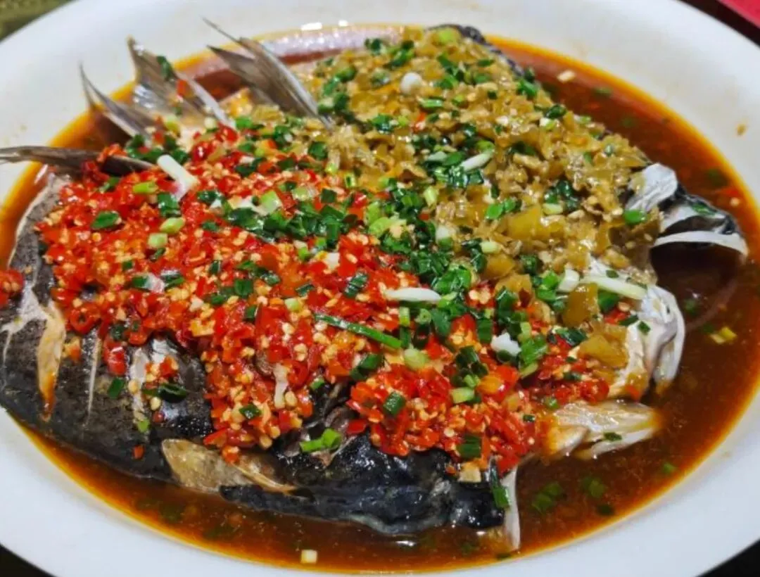 这道值得必点,可选微辣,鱼肉鲜嫩饱满,鱼头胶质部分尤其出彩。剁椒突出的是鲜,而非一味地咸。