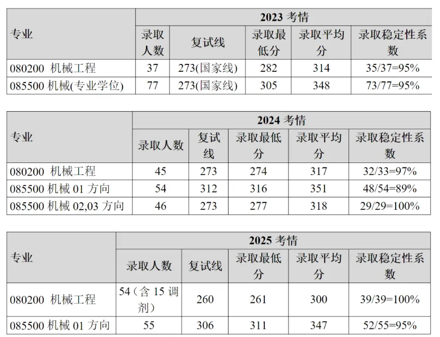 录取稳定性方面,学硕25进复试全部录取,稳定性100%;专硕01进复试78人,录取55人,初试排名前55名被录取52人,即录取稳定性为52/55=95%,一般来说复录稳定性系数高于85%就说明进复试不容易被刷,比较稳定。也就是说长沙理工,只要初试分数高,进复试就很安全。