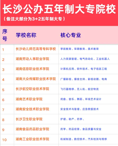 长沙公办五年制大专|精简择校版