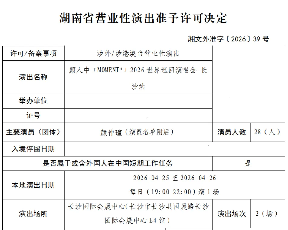 ✅颜人中「MOMENTn」2026 世界巡回演唱会-长沙站