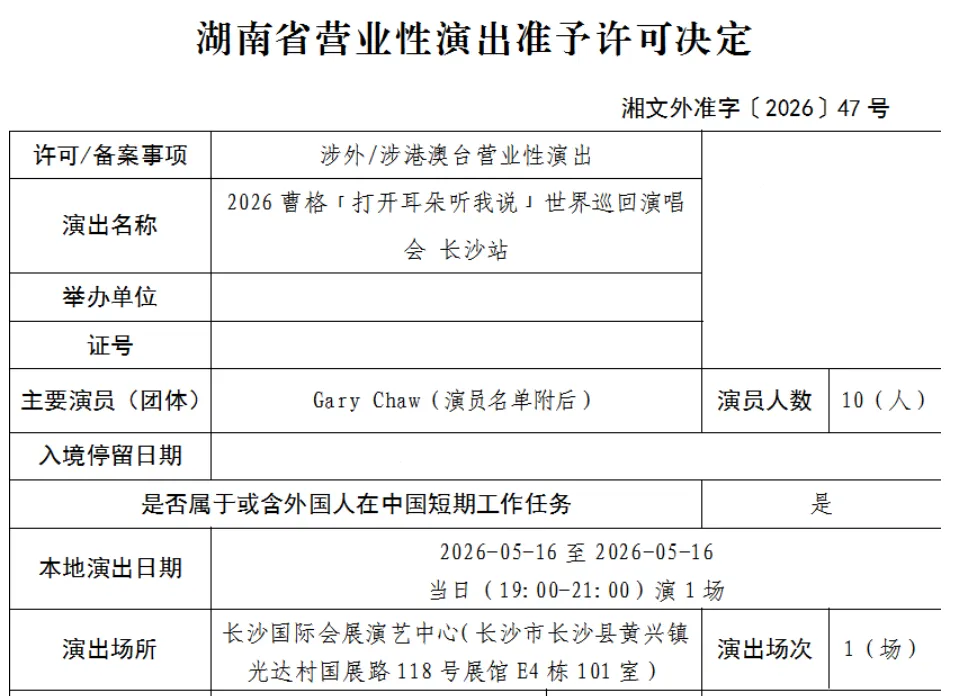 ✅2026 曹格「打开耳朵听我说」世界巡回演唱会 长沙站