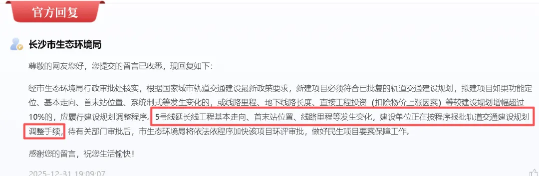今年1月5日,在湖南省发展改革(投资)工作会议上,明确提出将全力推动长株城际和长沙地铁5号线延长线等项目“尽快开工建设”;
