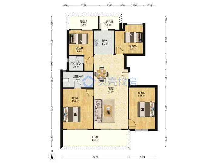 总楼层仅8层,128㎡通透四房,窗外直面滨江城景、隔壁就是别墅区,视野开阔、通风采光不受限。