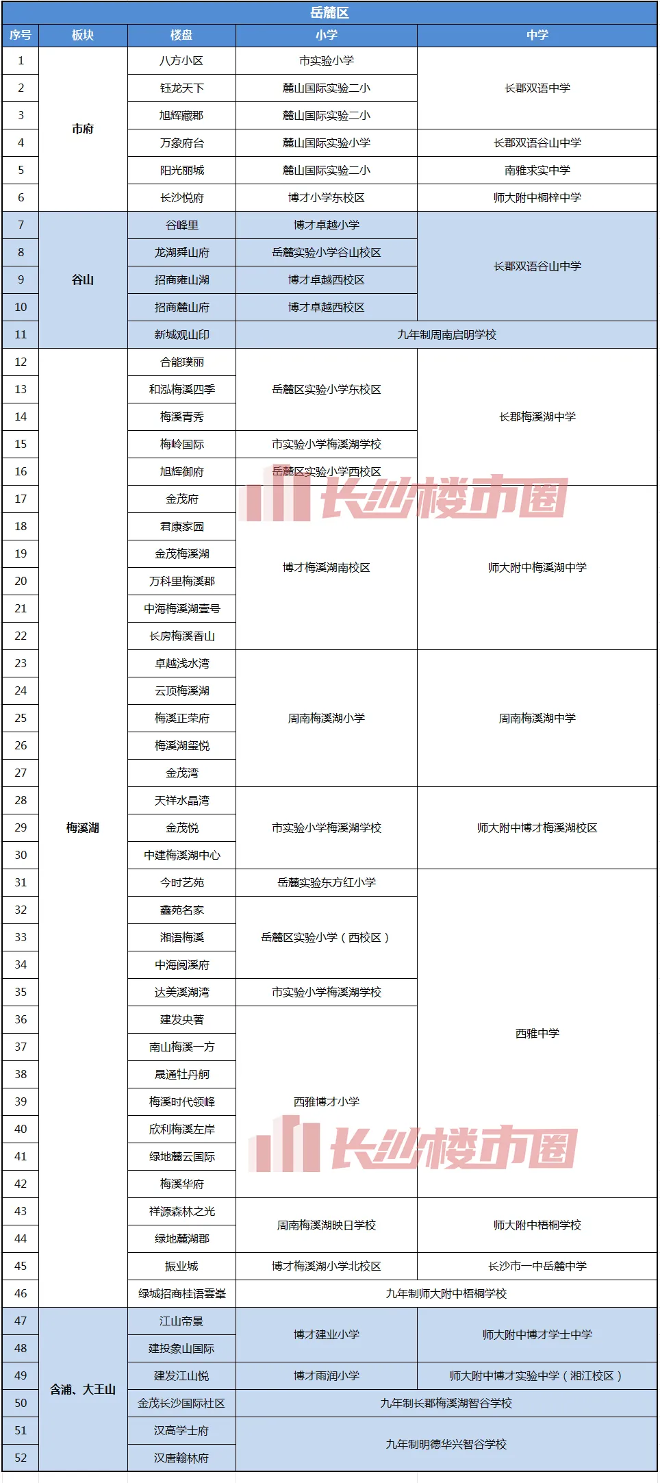 岳麓区的二手“双书包”房源数量居长沙之首,主要集中在市府、谷山、梅溪湖、含浦等板块。