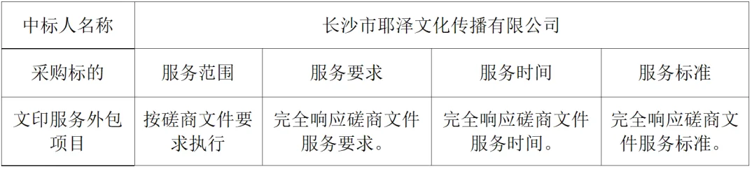 长沙市一中大泽湖学校文印服务外包项目中标(成交)结果公告