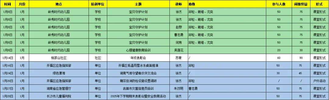 1月份共计完成培训--8场,直接受益人:463人,间接受益人:695人;参与湖南气候守望者伙伴交流会1次。