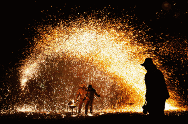 马踏祥云,龙腾九空、象王行、非遗打铁花、苗族篝火晚会多种节目轮番上映
