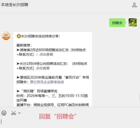 关注【本地宝长沙招聘】,在对话聊天框