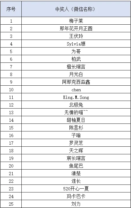 获奖名单来啦!