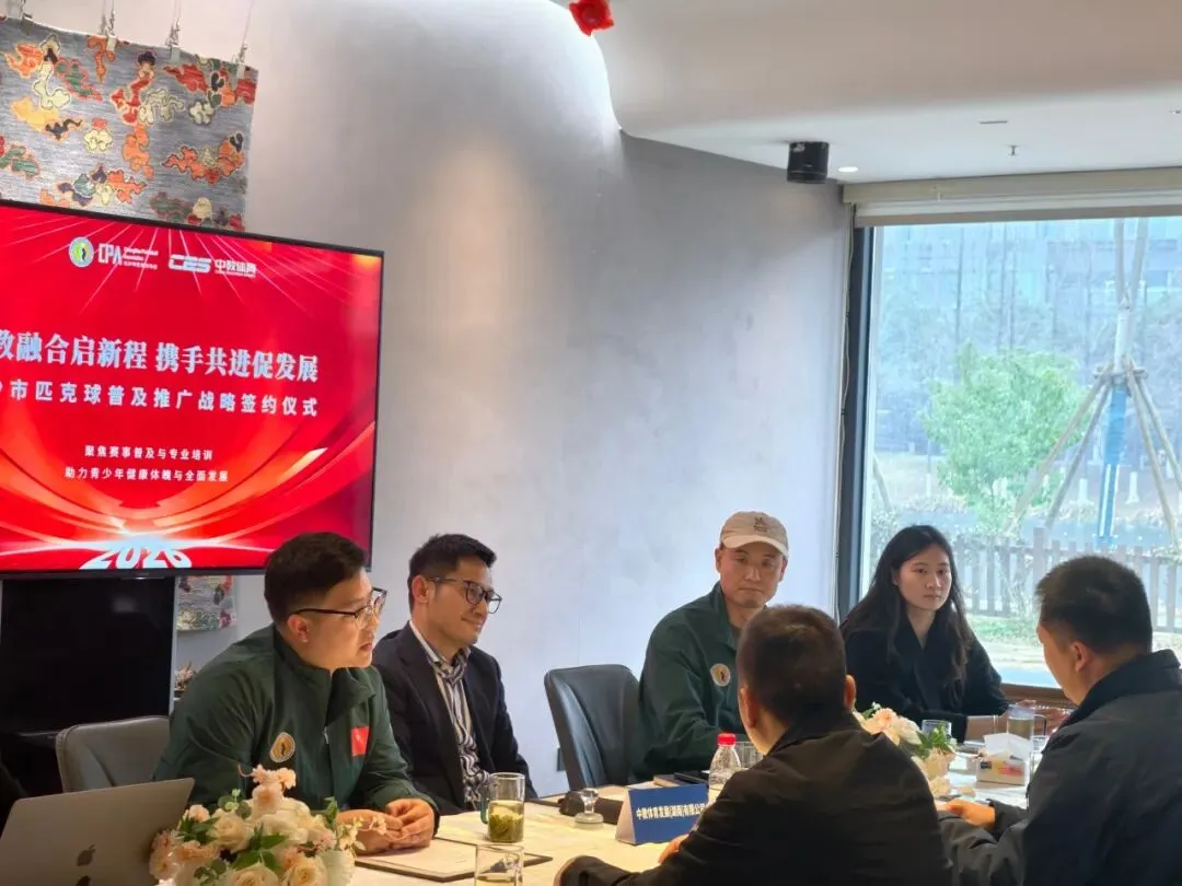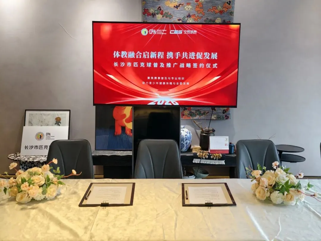 2026年2月6号,长沙市匹克球协会(CPA)与中教体育战略合作签约仪式在长沙隆重举行。长沙市匹克球协会会长李俊波及秘书处,中教体育兼体坛小奔董事长、《全体育》杂志社总经理李绍龙等领导出席仪式并见证签约。双方以“体教融合启新程 携手共进促发展”为主题,就匹克球项目普及推广、青少年体育教育体系建设达成深度合作,标志着我市匹克球运动与校园教育的融合发展迈入规范化、系统化新阶段。