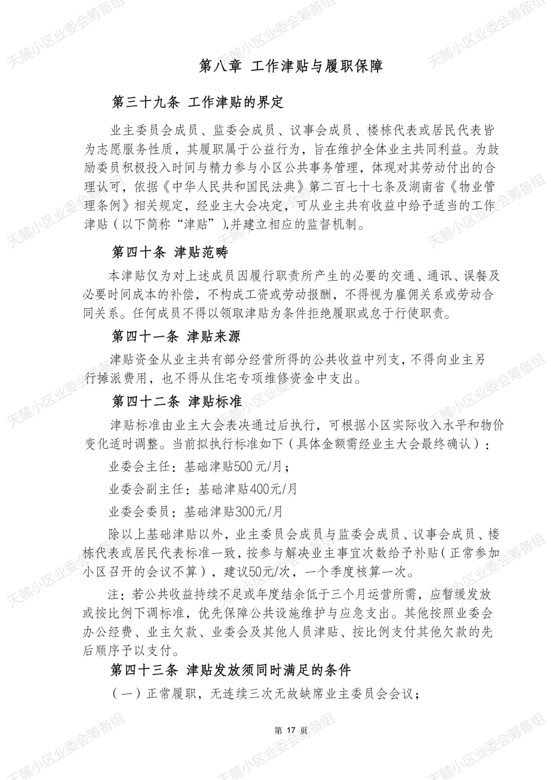 因文件涉及小区日常管理、业主各项权益,内容细节较多,我们虽始终以谨慎严谨的态度反复推敲,但仍不敢保证全无不妥之处。在此,也先向为这份草案付出时间和精力的楼栋长、律师专家,以及文案组、筹备组的各位成员道一声辛苦,感谢大家的倾力配合。
