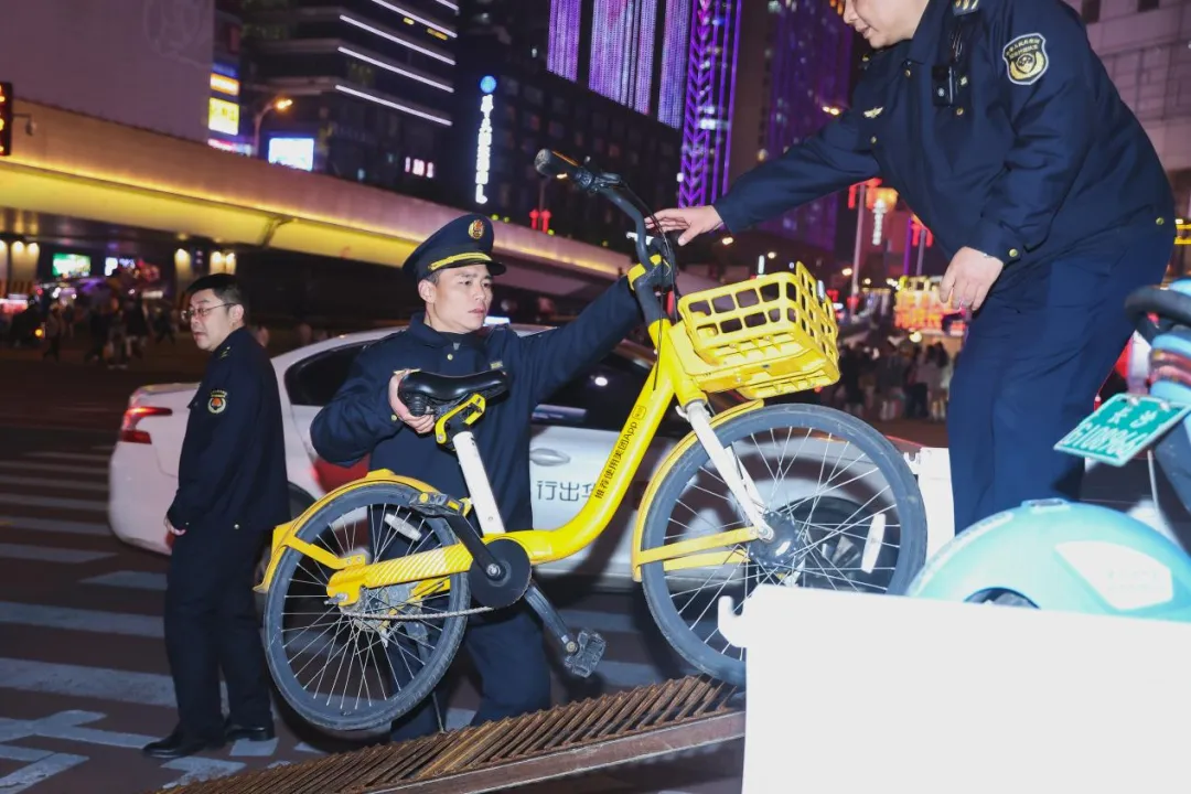为切实解决群众急难愁盼问题,全力营造安全、整洁、有序的新春商圈环境,连日来,市城管局五一商圈执法督查专班联动商圈所在区街道及执法队伍,迅速启动专项整治行动,以“安全规范、有序摆放”为核心目标,同步推进共享充电宝箱共享单车整治,靶向破解突出难题,确保安全畅通。