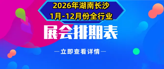 展会排期网-zhxxpq.com花费大量人力物力,坚持为大家整理编辑各地展会排期表,只因为我们知道这是您想要的信息,我们坚持做一个有内容、有价值的网络服务平台。据不完全统计,2026年1月-12月份湖南长沙全行业已知大小规模展会活动有近30场+...... 2026年即将有众多大牌展会悉数登场,行业涵盖了餐饮、健康、家博会、清洁用品、烘焙、保健、跨境电商、食品、食品设备、纺织、酒店用品、跨境电商、半导体、五金、铁路轨道、汽车、化妆品、服装、机床、清洁用品、珠宝、宠物、家居、茶博会、宠物、农机、美容展等多个领域。哪些精彩展会值得您重点关注和参与?敬请持续留意我们后续发布的详细展会信息排期预报哦!