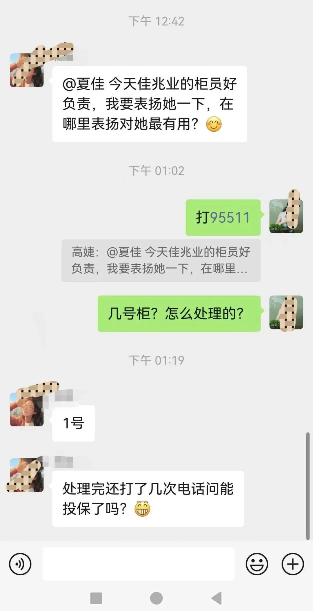 随后的几天里,柜员小刘多次主动电话跟进新单承保进度,确保每一个环节都顺利推进。最终,在她的持续关注与协调下,客户李女士的新单成功承保,整个流程圆满落地。